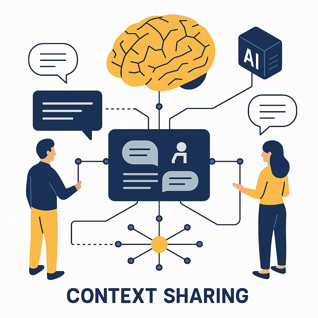 Context sharing is a proposed new AI UX pattern that addresses this issue at its core. In simple terms, context sharing means multiple users and AI systems contributing to and drawing from a shared pool of knowledge in real-time. Instead of each user being tied to an isolated model instance with a blank-slate memory, users (and even multiple AI agents) would interface with a shared cognitive workspace. All relevant conversation history, documents, and decisions in this workspace are accessible to authorized participants. In effect, the AI assistant is no longer personal and siloed – it becomes a shared team assistant or a “collective intelligence” that everyone collaborates with together.